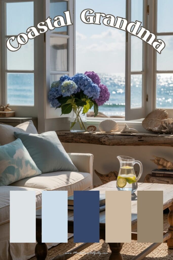 Color Palette: Sea glass, white linen, driftwood beige, and sky gray.